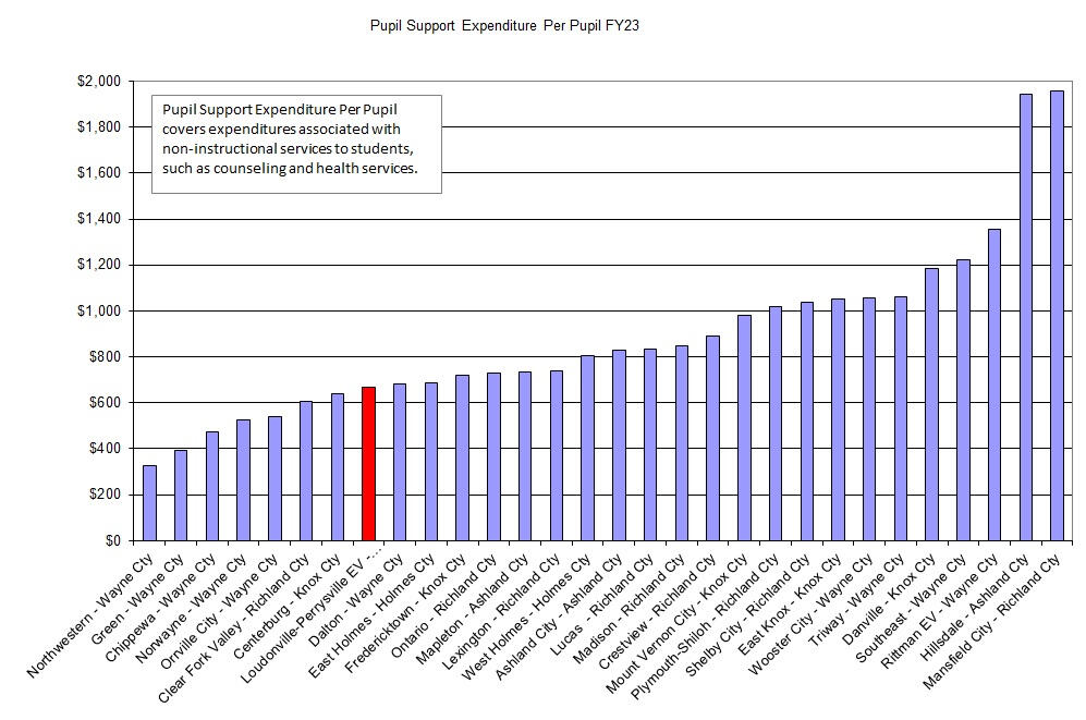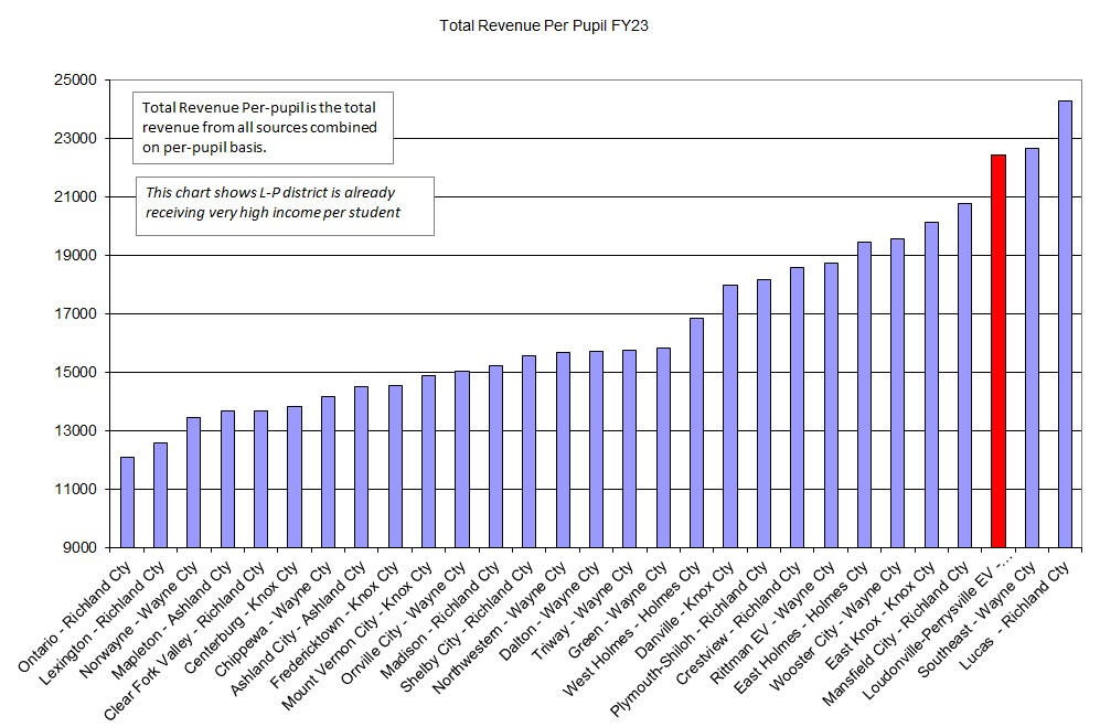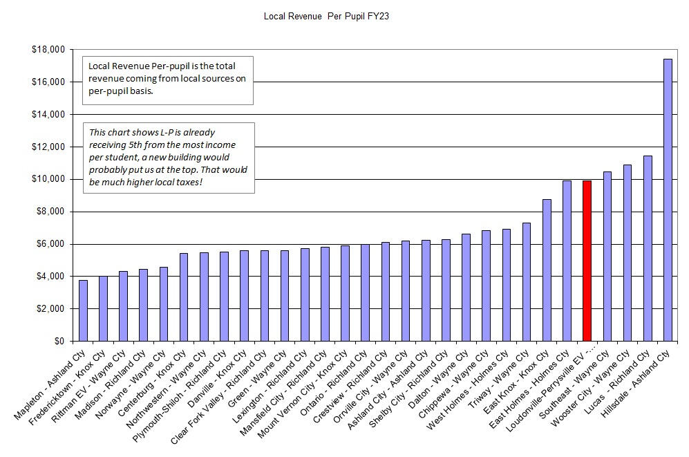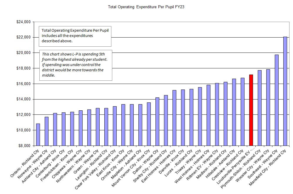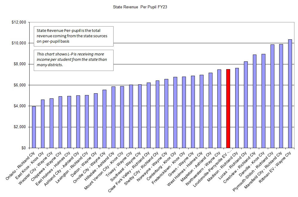 This website was created to take number information from the Ohio State website on the 2024 CUPP report and illustrate the data in comparison to other school districts in the surrounding counties. Mostly it is to point out how expensive Loudonville-Perrysville district already is in comparison to other school districts. At a high level these charts show what they bring in and where the money is spent.