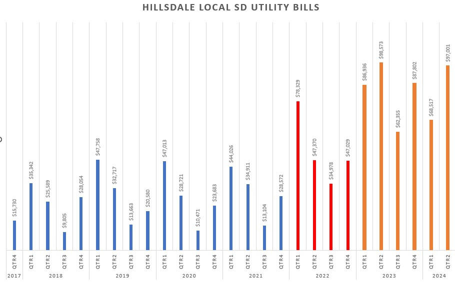 I asked the Treasurer from Hillsdale Local to send me the utility bills for the last few years. In whole years, 2018-2021 was averaging close to $115k per year. 2022 was a transition year so the data is not viable. 2023 was the first full year with students and the yearly cost was $335k that year. The Treasurer did state HVAC personnel did make a few visits to make adjustments and expects some savings from those adjustments. This is why the state requires a levy to be passed with a new school building levy, because it costs more to operate. If salaries and wages were enough of an offset, an operating levy would not be necessary.
